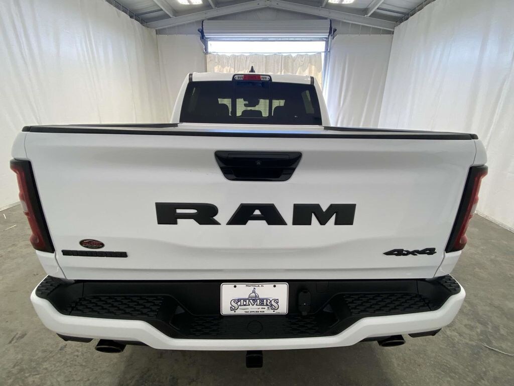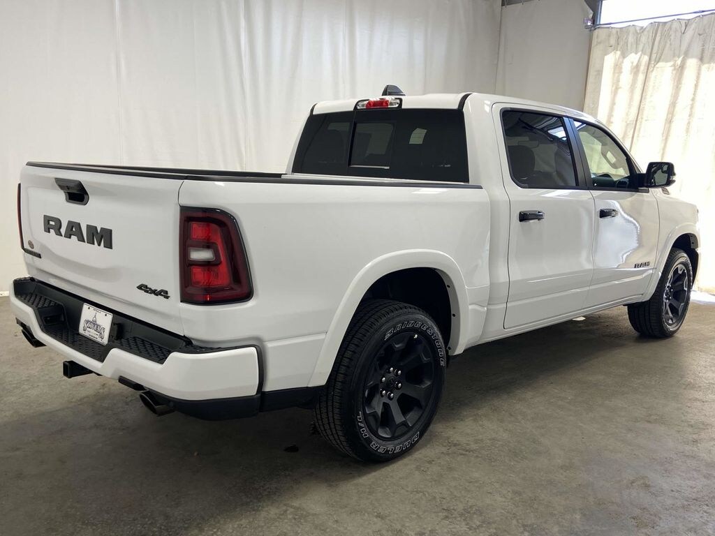 115V Auxiliary Power Outlet, 115V Auxiliary Rear Power Outlet, 12" Touchscreen Display, 2nd Row in Floor Storage Bins, 3 Rear Seat Head Restraints, 4 Way Front Headrests, 4-Wheel Disc Brakes, 400W Inverter, 48V Belt Starter Generator, 4G LTE Wi-Fi Hot Spot, 6 Speakers, 9 Amplified Speakers with Subwoofer, ABS brakes, Accent Color Door Handles, Accent Color Premium Power Mirrors, Accent Color Tailgate Handle, Air Conditioning, Air Conditioning ATC with Dual Zone Control, Alloy wheels, AM/FM radio, Anti-Spin Differential Rear Axle, Apple CarPlay, Apple CarPlay/Android Auto, Auto High-beam Headlights, Auto Power-Folding Mirrors, Auto-Dimming Exterior Driver Mirror, Auto-Dimming Rear-View Mirror, Big Horn Level 2 Equipment Group, Black Exterior Mirrors, Black Exterior Truck Badging, Black Headlamp Bezels, Black Interior Accents, Black Painted Exterior Mirrors Caps, Black Premium Power Mirrors, Black Tail Lamp Bezels, Body Color Fender Flares, Body Color Front Bumper, Body Color Rear Bumper with Step Pads, Brake assist, Bucket Seats, Bumpers: chrome, Center Console Parts Module, Cloth Bucket Seats, Cluster 12" TFT Color Display, Cluster 7.0" TFT Color Display, Compass, Configurable Drive Mode, Connected Travel and Traffic Services, Connectivity - US/Canada, Convex Wide-Angle Exterior Mirror Insert, Delay-off headlights, Deluxe Cloth Bucket Seats, Disassociated Touchscreen Display, Driver door bin, Dual Exhaust with Black Tips, Dual front impact airbags, Dual front side impact airbags, Electronic Stability Control, Exterior Mirrors Courtesy Lamps, Exterior Mirrors with Heating Element, Exterior Mirrors with Supplemental Signals, Front anti-roll bar, Front Bucket Seats, Front Center Armrest w/Storage, Front fog lights, Front reading lights, Front Seat Back Map Pockets, Front wheel independent suspension, Full Length Floor Console, Fully automatic headlights, Global Telematics Box Module, Glove Box Lamp, Google Android Auto, GPS Antenna Input, GPS Navigation, Grille Black Surround Black Mesh, HD Radio, Heated door mirrors, Heated Front Seats, Heated Steering Wheel, Illuminated entry, Integrated Center Stack Radio, Integrated Voice Command with Bluetooth, Leather Wrapped Steering Wheel, LED Dome Lamp with on/Off Switch, LED Footwell Lighting, Low tire pressure warning, Manual Adjust 4-Way Driver Seat, Manual Adjust 4-Way Front Passenger Seat, Manual Folding Exterior Mirrors, Manufacturer's Statement of Origin, Media Hub with 2 Charge Only USBs, MOPAR Front and Rear Rubber Floor Mats, Night Edition, Occupant sensing airbag, Outside temperature display, Overhead airbag, Overhead console, Overhead LED Lamps, Panic alarm, ParkView Rear Back-Up Camera, Passenger door bin, Passenger vanity mirror, Power 2-Way Driver Lumbar Adjust, Power Adjust 8-Way Driver Seat, Power Adjustable Pedals, Power door mirrors, Power steering, Power windows, Premium Overhead Console, Quick Order Package 21Z Big Horn, Radio data system, Radio: Uconnect 5 Navigation with 12.0" Display, Radio: Uconnect 5 W with 8.4" Display, RAM Grille Badge - Black, RAM Grille Badge - Chrome, Rear 60/40 Folding Seat, Rear anti-roll bar, Rear Center Armrest, Rear Power Sliding Window, Rear step bumper, Rear Wheelhouse Liners, Rear Window Defroster, Remote keyless entry, Remote Tailgate Release, Security Alarm, SiriusXM Radio Service, SiriusXM with 360L, Speed control, Steering Wheel Mounted Audio Controls, Sun Visors with Illuminated Vanity Mirrors, Supplier Part Tracking (J-1), Tachometer, Telescoping steering wheel, Tilt steering wheel, Traction control, Trailer Brake Control, Trip computer, Universal Garage Door Opener, USB Host Flip, Variably intermittent wipers, Voltmeter, Wheels: 20" x 9.0" Aluminum Painted Clad.