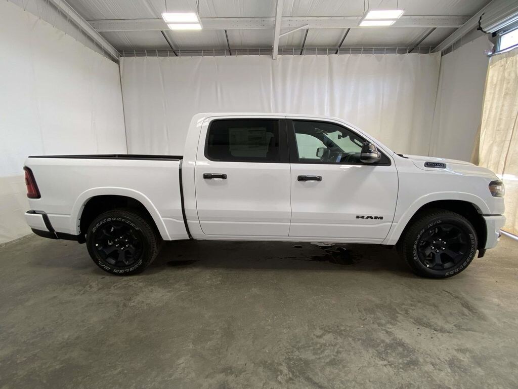 115V Auxiliary Power Outlet, 115V Auxiliary Rear Power Outlet, 12" Touchscreen Display, 2nd Row in Floor Storage Bins, 3 Rear Seat Head Restraints, 4 Way Front Headrests, 4-Wheel Disc Brakes, 400W Inverter, 48V Belt Starter Generator, 4G LTE Wi-Fi Hot Spot, 6 Speakers, 9 Amplified Speakers with Subwoofer, ABS brakes, Accent Color Door Handles, Accent Color Premium Power Mirrors, Accent Color Tailgate Handle, Air Conditioning, Air Conditioning ATC with Dual Zone Control, Alloy wheels, AM/FM radio, Anti-Spin Differential Rear Axle, Apple CarPlay, Apple CarPlay/Android Auto, Auto High-beam Headlights, Auto Power-Folding Mirrors, Auto-Dimming Exterior Driver Mirror, Auto-Dimming Rear-View Mirror, Bed Utility Group, Big Horn Level 2 Equipment Group, Black Exterior Mirrors, Black Exterior Truck Badging, Black Headlamp Bezels, Black Interior Accents, Black Painted Exterior Mirrors Caps, Black Premium Power Mirrors, Black Tail Lamp Bezels, Body Color Fender Flares, Body Color Front Bumper, Body Color Rear Bumper with Step Pads, Brake assist, Bucket Seats, Bumpers: chrome, Center Console Parts Module, Cloth Bucket Seats, Cluster 12" TFT Color Display, Cluster 7.0" TFT Color Display, Compass, Configurable Drive Mode, Connected Travel and Traffic Services, Connectivity - US/Canada, Convex Wide-Angle Exterior Mirror Insert, Delay-off headlights, Deluxe Cloth Bucket Seats, Disassociated Touchscreen Display, Driver door bin, Dual Exhaust with Black Tips, Dual front impact airbags, Dual front side impact airbags, Electronic Stability Control, Exterior 115V AC Outlet, Exterior Mirrors Courtesy Lamps, Exterior Mirrors with Heating Element, Exterior Mirrors with Supplemental Signals, Front anti-roll bar, Front Bucket Seats, Front Center Armrest w/Storage, Front fog lights, Front reading lights, Front Seat Back Map Pockets, Front wheel independent suspension, Full Length Floor Console, Fully automatic headlights, Global Telematics Box Module, Glove Box Lamp, Google Android Auto, GPS Antenna Input, GPS Navigation, Grille Black Surround Black Mesh, HD Radio, Heated door mirrors, Heated Front Seats, Heated Steering Wheel, Illuminated entry, Integrated Center Stack Radio, Integrated Voice Command with Bluetooth, Leather Wrapped Steering Wheel, LED Dome Lamp with on/Off Switch, LED Footwell Lighting, Low tire pressure warning, Manual Adjust 4-Way Driver Seat, Manual Adjust 4-Way Front Passenger Seat, Manual Folding Exterior Mirrors, Media Hub with 2 Charge Only USBs, MOPAR 4 Adjustable Cargo Tie-Down Hooks, MOPAR Front and Rear Rubber Floor Mats, MOPAR Spray in Bedliner, Night Edition, Occupant sensing airbag, Outside temperature display, Overhead airbag, Overhead console, Overhead LED Lamps, Panic alarm, ParkView Rear Back-Up Camera, Passenger door bin, Passenger vanity mirror, Pick-Up Box Lighting, Power 2-Way Driver Lumbar Adjust, Power Adjust 8-Way Driver Seat, Power Adjustable Pedals, Power door mirrors, Power steering, Power windows, Premium Overhead Console, Quick Order Package 21Z Big Horn, Radio data system, Radio: Uconnect 5 Navigation with 12.0" Display, Radio: Uconnect 5 W with 8.4" Display, RAM Grille Badge - Black, RAM Grille Badge - Chrome, Rear 60/40 Folding Seat, Rear anti-roll bar, Rear Center Armrest, Rear Power Sliding Window, Rear step bumper, Rear Wheelhouse Liners, Rear Window Defroster, Remote keyless entry, Remote Tailgate Release, Security Alarm, SiriusXM Radio Service, SiriusXM with 360L, Speed control, Steering Wheel Mounted Audio Controls, Sun Visors with Illuminated Vanity Mirrors, Supplier Part Tracking (J-1), Tachometer, Telescoping steering wheel, Tilt steering wheel, Traction control, Trailer Brake Control, Trip computer, Universal Garage Door Opener, USB Host Flip, Variably intermittent wipers, Voltmeter, Wheels: 20" x 9.0" Aluminum Painted Clad.