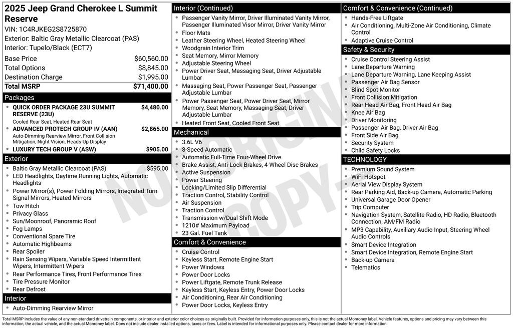 Elevate your adventures in the 2025 Jeep Grand Cherokee L Summit. This exceptional SUV offers the perfect blend of luxury, capability, and technology to elevate your driving experience. Schedule a test drive today and discover the ultimate in Jeep refinement.