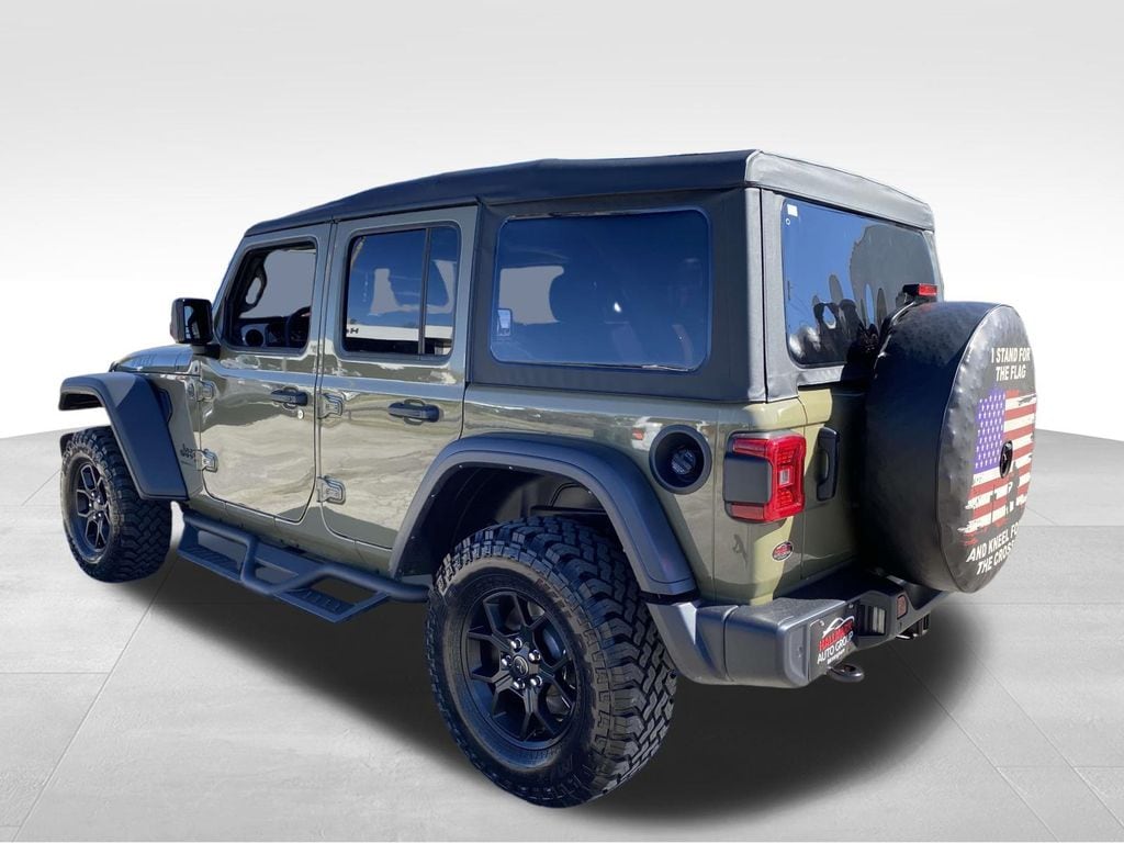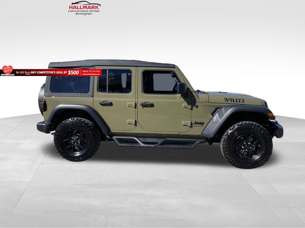 110 MPH Vehicle Max Speed Calibration, 2-Door Passive Entry, Front Door Locks, 3.45 Overall Top Gear Ratio, 4-Wheel Disc Brakes, 4-Wheel Drive Swing Gate Decal, 4.10 Rear Axle Ratio, 7 & 4 Pin Wiring Harness, 8 Speakers, 97 MPH Vehicle Max Speed Calibration, ABS brakes, Advanced Brake Assist, Air Conditioning, Air Filtering, AM/FM radio: SiriusXM, Apple CarPlay/Android Auto, Auto High Beam Headlamp Control, Aux Battery, Black Grille, Brake assist, Class II Receiver Hitch, Cloth Low-Back Bucket Seats, Cluster 7.0" TFT Color Display, Compass, Convenience Group, Conventional Differential Front Axle, Corning Gorilla Glass, Dana M210 Wide HD Tube Front Axle, Deep Tint Sunscreen Windows, Delay-off headlights, Driver door bin, Driver vanity mirror, Dual front impact airbags, Dual front side impact airbags, E-Locker Rear Axle, Electronic Stability Control, Front anti-roll bar, Front Bucket Seats, Front Center Armrest w/Storage, Front fog lights, Front reading lights, Illuminated entry, Integrated roll-over protection, Low tire pressure warning, Molded in Color Rubicon Highline Flare, MOPAR All-Weather Floor Mats, Non-Lock Fuel Cap w/o Discriminator, Normal Duty Suspension, Occupant sensing airbag, Off-Road Plus Mode, Outside temperature display, Overhead airbag, Panic alarm, ParkSense Rear Park Assist System, ParkView Rear Back-Up Camera, Passenger door bin, Passenger vanity mirror, Power steering, Power windows, Premium Wrapped Steering Wheel, Quick Order Package 22W Willys, Radio data system, Radio: Uconnect 5 w/12.3" Display, Rear anti-roll bar, Rear reading lights, Remote keyless entry, Remote Start System, Safety Group, Security Alarm, Speed control, Split folding rear seat, Steering wheel mounted audio controls, Stop-Start Dual Battery System, Sun Visors w/Illuminated Vanity Mirrors, Tachometer, Telescoping steering wheel, Tilt steering wheel, Traction control, Trip computer, Variably intermittent wipers, Wheels: 17" x 7.5" Black Steel Styled, Wheels: 17" x 7.5" Painted Black, Willy's Suspension, Willys Hood Decal. 41 2025 Jeep Wrangler Willys 8-Speed Automatic 2.0L I4 DOHC 4WD