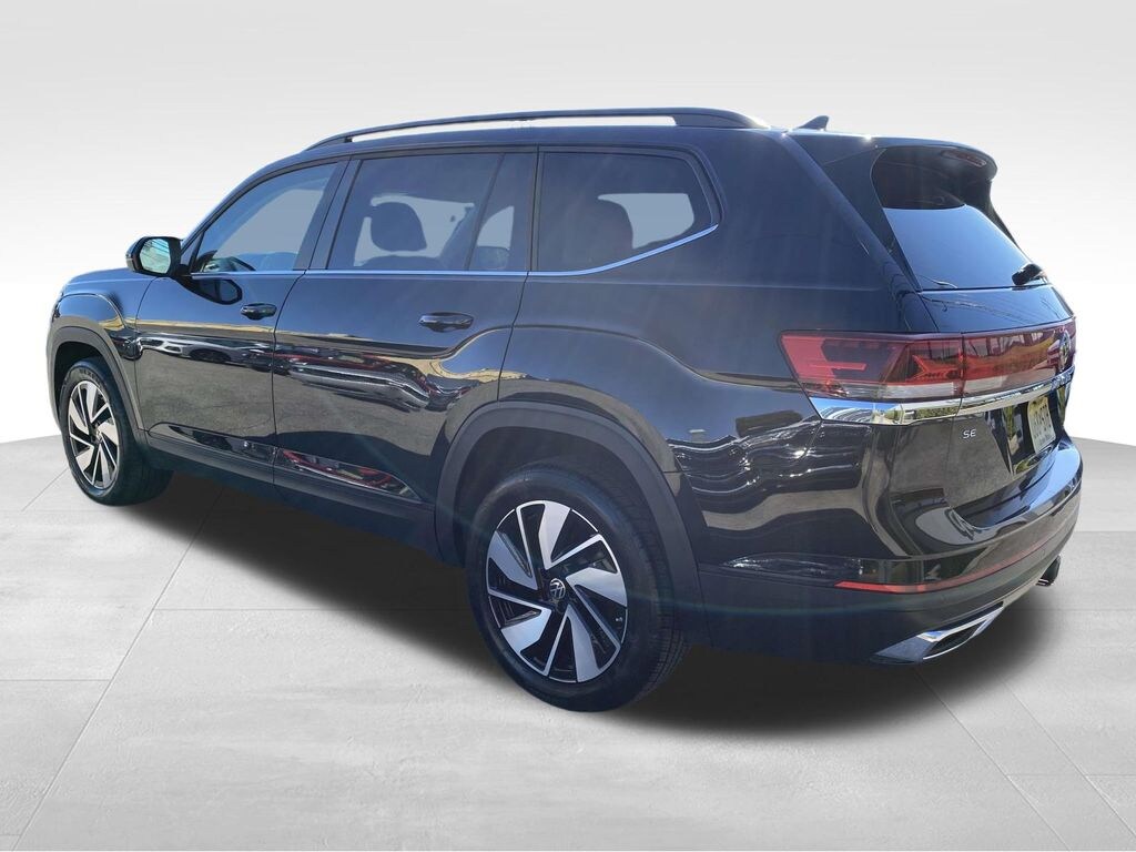 3.60 Axle Ratio, 3rd row seats: split-bench, 4-Wheel Disc Brakes, 6 Speakers, ABS brakes, Air Conditioning, Alloy wheels, AM/FM radio: SiriusXM with 360L, Auto-dimming Rear-View mirror, Automatic temperature control, Brake assist, Bumpers: body-color, Compass, Delay-off headlights, Driver door bin, Driver vanity mirror, Dual front impact airbags, Dual front side impact airbags, Electronic Stability Control, Emergency communication system: VW Car-Net Safe & Secure 5-year, Exterior Parking Camera Rear, Four wheel independent suspension, Front anti-roll bar, Front Bucket Seats, Front Center Armrest, Front dual zone A/C, Front fog lights, Front reading lights, Fully automatic headlights, Heated door mirrors, Heated front seats, Heated steering wheel, Heated/Actively Ventilated Front Bucket Seats, Illuminated entry, Low tire pressure warning, Occupant sensing airbag, Outside temperature display, Overhead airbag, Overhead console, Panic alarm, Passenger door bin, Passenger vanity mirror, Perforated V-Tex Leatherette Seating Surfaces, Power door mirrors, Power driver seat, Power Liftgate, Power steering, Power windows, Radio data system, Radio: MIB3 Composition Media, Rain sensing wipers, Rear air conditioning, Rear anti-roll bar, Rear reading lights, Rear seat center armrest, Rear window defroster, Rear window wiper, Remote keyless entry, Security system, Speed control, Speed-sensing steering, Split folding rear seat, Spoiler, Standard Suspension, Steering wheel mounted audio controls, Tachometer, Telescoping steering wheel, Tilt steering wheel, Traction control, Trip computer, Turn signal indicator mirrors, Variably intermittent wipers, Ventilated front seats, Wheels: 20" 2-Tone Machined Alloy. Deep Black Pearl 2024 Volkswagen Atlas 2.0T SE w/Technology 8-Speed Automatic with Tiptronic 2.0L TSI AWD