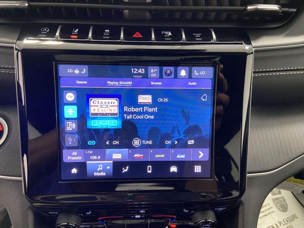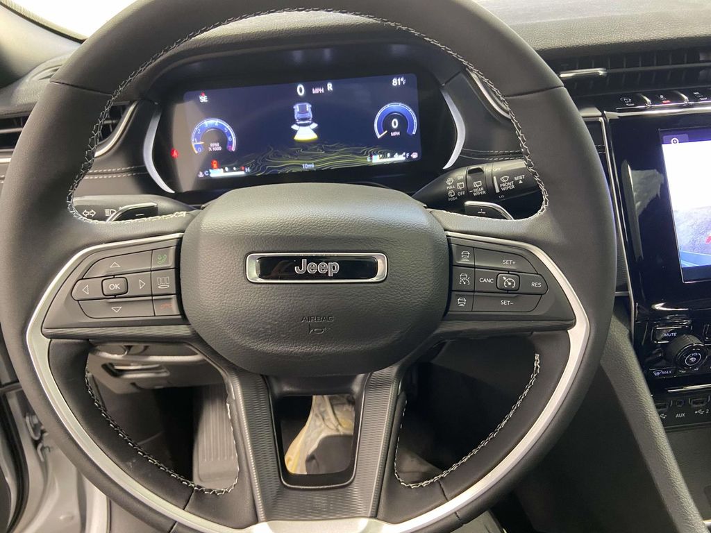 4WD, 115V Auxiliary Power Outlet, 180 Amp Alternator, 4-Wheel Disc Brakes, 6 Speakers, 7 & 4-Pin Wiring Harness, ABS brakes, Air Conditioning, Alloy wheels, AM/FM radio: SiriusXM, Anti-whiplash front head restraints, Automatic Headlamp Levelling System, Automatic temperature control, Brake assist, Bumpers: body-color, Class IV Receiver Hitch, Cloth Seats, Compass, Delay-off headlights, Driver door bin, Driver vanity mirror, Dual front impact airbags, Dual front side impact airbags, Electronic Stability Control, Emergency communication system, Four wheel independent suspension, Front anti-roll bar, Front Bucket Seats, Front Center Armrest w/Storage, Front dual zone A/C, Front License Plate Bracket, Front reading lights, Fully automatic headlights, Heated door mirrors, Heated Front Seats, Heated Steering Wheel, Heavy-Duty Engine Cooling, Illuminated entry, Knee airbag, Laredo X, Low tire pressure warning, Luxury Tech Group I, Model Year Tracking, Normal Duty Suspension, Occupant sensing airbag, Outside temperature display, Overhead airbag, Overhead console, Panic alarm, ParkView Rear Back-Up Camera, Passenger door bin, Passenger vanity mirror, Power door mirrors, Power driver seat, Power Liftgate, Power steering, Power Sunroof, Power windows, Quick Order Package 23D Laredo X, Radio data system, Radio: Uconnect 5 w/8.4" Display, Rain Sensitive Windshield Wipers, Rear anti-roll bar, Rear Load Levelling Suspension, Rear reading lights, Rear window defroster, Rear window wiper, Remote keyless entry, Remote Start System, Satellite Radio, Secondary Active Grille Shutters, Security system, Selectable Tire Fill Alert, Speed control, Speed-Sensitive Wipers, Split folding rear seat, Spoiler, Steering wheel mounted audio controls, Tachometer, Telescoping steering wheel, Tilt steering wheel, Traction control, Trailer Hitch Zoom, Trailer Tow Package, Trip computer, Variably intermittent wipers, Voltmeter, Wheels: 17" x 6.5" Fully Painted Aluminum, Wheels: 18" x 8" Fully Painted Aluminum, Wireless Charging Pad, 4WD.