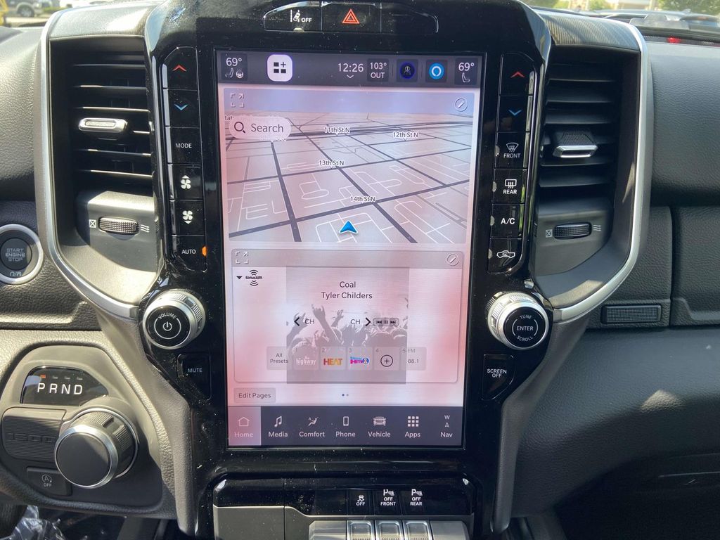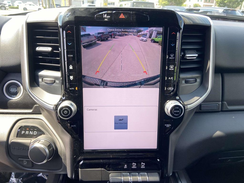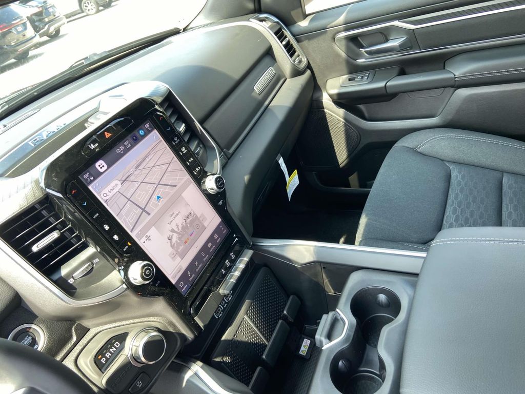 115V Auxiliary Power Outlet, 115V Auxiliary Rear Power Outlet, 12" Touchscreen Display, 2nd Row In Floor Storage Bins, 3 Rear Seat Head Restraints, 3.21 Rear Axle Ratio, 4 Way Front Headrests, 4-Wheel Disc Brakes, 400W Inverter, 4G LTE Wi-Fi Hot Spot, 6 Speakers, 9 Amplified Speakers w/Subwoofer, ABS brakes, Accent Color Door Handles, Accent Color Premium Power Mirrors, Accent Color Tailgate Handle, Air Conditioning, Air Conditioning ATC w/Dual Zone Control, Alloy wheels, AM/FM radio, Anti-Spin Differential Rear Axle, Apple CarPlay, Apple CarPlay/Android Auto, Auto High-beam Headlights, Auto Power-Folding Mirrors, Auto-Dimming Exterior Driver Mirror, Auto-Dimming Rear-View Mirror, Big Horn Level 2 Equipment Group, Black Exterior Mirrors, Black Exterior Truck Badging, Black Headlamp Bezels, Black Interior Accents, Black Painted Exterior Mirrors Caps, Black Premium Power Mirrors, Black Tail Lamp Bezels, Body Color Front Bumper, Body Color Rear Bumper w/Step Pads, Brake assist, Bucket Seats, Bumpers: chrome, Cloth Bench Seat, Cluster 7.0" TFT Color Display, Compass, Configurable Drive Mode, Connected Travel & Traffic Services, Connectivity - US/Canada, Convex Wide-Angle Exterior Mirror Insert, Delay-off headlights, Deluxe Cloth Bucket Seats, Driver door bin, Dual front impact airbags, Dual front side impact airbags, Electronic Stability Control, Exterior Mirrors Courtesy Lamps, Exterior Mirrors w/Heating Element, Exterior Mirrors w/Supplemental Signals, Exterior Parking Camera Rear, Front anti-roll bar, Front Center Armrest w/Storage, Front fog lights, Front reading lights, Front Seat Back Map Pockets, Front wheel independent suspension, Full Length Floor Console, Fully automatic headlights, Glove Box Lamp, Google Android Auto, GPS Antenna Input, GPS Navigation, Grille Black Surround Black Mesh, HD Radio, Heated door mirrors, Heated Front Seats, Heated Steering Wheel, Illuminated entry, Integrated Voice Command w/Bluetooth, Leather Wrapped Steering Wheel, LED Dome Lamp w/On/Off Switch, LED Footwell Lighting, Low tire pressure warning, Manual Adjust 4-Way Front Passenger Seat, Manual Folding Exterior Mirrors, Media Hub w/2 Charge Only USBs, MOPAR Front & Rear Rubber Floor Mats, Night Edition, Occupant sensing airbag, Outside temperature display, Overhead airbag, Overhead console, Overhead LED Lamps, Panic alarm, Passenger door bin, Passenger vanity mirror, Power 2-Way Driver Lumbar Adjust, Power Adjust 8-Way Driver Seat, Power Adjustable Pedals, Power door mirrors, Power steering, Power windows, Premium Overhead Console, Quick Order Package 23Z Big Horn, Radio data system, Radio: Uconnect 5 Nav w/12.0" Display, Radio: Uconnect 5 W w/8.4" Display, RAM Grille Badge - Black, RAM Grille Badge - Chrome, Rear 60/40 Folding Seat, Rear anti-roll bar, Rear Center Armrest, Rear Power Sliding Window, Rear seat center armrest, Rear step bumper, Rear Wheelhouse Liners, Rear Window Defroster, Remote keyless entry, Remote Tailgate Release, Security Alarm, SiriusXM w/360L, Speed control, Split folding rear seat, Steering Wheel Mounted Audio Controls, Sun Visors w/Illuminated Vanity Mirrors, Supplier Part Tracking (J-1), Tachometer, Telescoping steering wheel, Tilt steering wheel, Traction control, Trip computer, Universal Garage Door Opener, USB Host Flip, Variably intermittent wipers, Voltmeter, Wheels: 18" x 8" Cast-Aluminum Painted, Wheels: 20" x 9.0" Aluminum Painted Clad.
