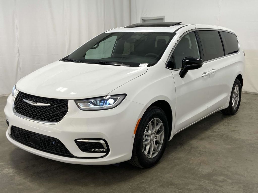 10.1" Touchscreen Display, 17" x 7.0" Aluminum Wheels, 3.25 Axle Ratio, 360 Surround View Camera System, 3rd row seats: split-bench, 4-Wheel Disc Brakes, 4G LTE Wi-Fi Hot Spot, 6 Speakers, 8-Passenger Seating, ABS brakes, Air Conditioning, Alloy wheels, AM/FM radio: SiriusXM, Apple CarPlay, Apple CarPlay/Android Auto, Auto-dimming Rear-View mirror, Automatic temperature control, Black Seats, Brake assist, Bumpers: body-color, Caprice Leatherette Bucket Seats, Compass, Connectivity - US/Canada, Delay-off headlights, Disassociated Touchscreen Display, Driver door bin, Driver vanity mirror, Driver's Seat Mounted Armrest, Dual front impact airbags, Dual front side impact airbags, Electronic Stability Control, Emergency communication system: Chrysler Connect, For Details, Visit DriveUconnect.com, Four wheel independent suspension, Front anti-roll bar, Front Bucket Seats, Front dual zone A/C, Front fog lights, Front reading lights, Fully automatic headlights, Garage door transmitter, Google Android Auto, GPS Antenna Input, Heated door mirrors, Heated front seats, Heated steering wheel, Illuminated entry, Integrated Active Noise Cancellation, Integrated Center Stack Radio, Knee airbag, Low tire pressure warning, Memory seat, Occupant sensing airbag, Outside temperature display, Overhead airbag, Overhead console, Panic alarm, ParkSense Front/Rear Park Assist w/Stop, ParkView Rear Back-Up Camera, Passenger door bin, Passenger seat mounted armrest, Passenger vanity mirror, Power door mirrors, Power driver seat, Power Liftgate, Power Open/Close Shade, Power steering, Power windows, Quick Order Package 27L, Radio data system, Radio: Uconnect 5 w/10.1" Display, Rain sensing wipers, Rear air conditioning, Rear reading lights, Rear window defroster, Rear window wiper, Reclining 3rd row seat, Remote keyless entry, Safety Sphere, Security system, Speed control, Split folding rear seat, Spoiler, Steering wheel mounted audio controls, Tachometer, Telescoping steering wheel, Tilt steering wheel, Touring Suspension, Traction control, Trip computer, Turn signal indicator mirrors, USB Host Flip, Variably intermittent wipers, Voltmeter.