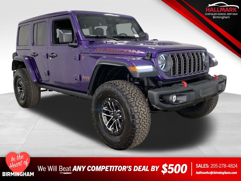 12.3" Touchscreen Display, 35" Tire Suspension, 4-Wheel Disc Brakes, 4G LTE Wi-Fi Hot Spot, 8 Speakers, ABS brakes, Acoustic Front Seat Area Carpet, Acoustic Laminated Front Door Glass, Air Conditioning, Alloy wheels, Alpine Premium Audio System, AM/FM radio: SiriusXM with 360L, Anti-Lock 4-Wheel Disc Perf Brakes, Apple CarPlay, Apple CarPlay/Android Auto, Auto High Beam Headlamp Control, Auto-Dimming Rear-View Mirror, Automatic temperature control, Aux Battery, Blind Spot & Cross Path Detection, Body Color 3-Piece Hard Top, Body Color Rubicon Highline Flare, Brake assist, Cloth Low-Back Bucket Seats, Compass, Connected Travel & Traffic Services, Connectivity - US/Canada, Delay-off headlights, Driver door bin, Driver vanity mirror, Dual front impact airbags, Dual front side impact airbags, Electronic Stability Control, Emergency communication system: Jeep Connect, For More Info, Call 800-643-2112, Freedom Panel Storage Bag, Front anti-roll bar, Front Bucket Seats, Front Center Armrest w/Storage, Front dual zone A/C, Front fog lights, Front reading lights, Fully automatic headlights, Google Android Auto, HD Radio, Heated door mirrors, Heated Front Seats, Heated Steering Wheel, Illuminated entry, Integrated Center Stack Radio, Integrated Off-Road Camera, Integrated roll-over protection, Integrated Voice Command w/Bluetooth, Leather Wrapped Park Brake Handle, Leather Wrapped Shift Knob, Low tire pressure warning, MOPAR All-Weather Floor Mats, MOPAR Hardtop Headliner, MOPAR Hinge-Gate Reinforcement, MyFlexCare Service Plan, Nappa Leather Seats, Non-Lock Fuel Cap w/o Discriminator, Occupant sensing airbag, Outside temperature display, Overhead airbag, Panic alarm, ParkSense Rear Park Assist System, ParkView Rear Back-Up Camera, Passenger door bin, Passenger vanity mirror, Performance Suspension, Power 4-Way Driver Lumbar Adjust, Power 4-Way Passenger Lumbar Adjust, Power Adjust 8-Way Driver Seat, Power Adjust 8-Way Front Passenger Seat, Power door mirrors, Power steering, Power Top Quarter Window Storage Bag, Power windows, Premium Door Trim Panel, Quick Order Package 24Y Rubicon X, Radio data system, Radio: Uconnect 5 Nav w/12.3" Display, Radio: Uconnect 5 w/12.3" Display, Rear anti-roll bar, Rear reading lights, Rear Window Defroster, Rear Window Wiper/Washer, Remote keyless entry, Removable Rear Quarter Windows, Security system, SiriusXM Radio Service, SiriusXM w/360L, Sky 1-Touch Power Top, Speed control, Split folding rear seat, Steel Front Bumper, Steel Rear Bumper, Steering wheel mounted audio controls, Stop-Start Dual Battery System, Tachometer, Telescoping steering wheel, Tilt steering wheel, Traction control, Trailer Tow & Aux Switch Group, Trailer Tow Prep Package, Trip computer, Universal Garage Door Opener, Variably intermittent wipers, Voltmeter, Wheel Flare Extensions, Wheels: 17" x 7.5" Machined/Painted Black, Wheels: 17" x 8" Machined w/Black Pockets, Xtreme 35" Tire Package.