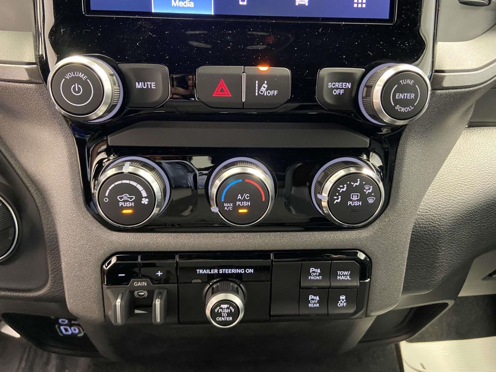 2nd Row in Floor Storage Bins, 3.21 Rear Axle Ratio, 4-Wheel Disc Brakes, 48V Belt Starter Generator, 6 Speakers, ABS brakes, Accent Color Tailgate Handle, Air Conditioning, AM/FM radio, Apple CarPlay/Android Auto, Auto High-beam Headlights, Black Exterior Mirrors, Black Trailer Tow Power Mirrors, Brake assist, Cloth Bench Seat, Compass, Delay-off headlights, Driver door bin, Dual front impact airbags, Dual front side impact airbags, Electronic Stability Control, Exterior Mirrors Courtesy Lamps, Exterior Mirrors with Heating Element, Exterior Mirrors with Supplemental Signals, Front and Rear Floor Mats, Front anti-roll bar, Front Center Armrest, Front License Plate Bracket, Front reading lights, Front wheel independent suspension, Fully automatic headlights, Heated door mirrors, Heavy Duty Vinyl 40/20/40 Split Bench Seat, Illuminated entry, Low tire pressure warning, Manual Folding Exterior Mirrors, Manuarl Telescoping Mirrors, Mirror Clearance/Running Lights, Mopar Black Tubular Side Steps, Occupant sensing airbag, Outside temperature display, Overhead airbag, Overhead console, Panic alarm, ParkView Rear Back-Up Camera, Passenger door bin, Passenger vanity mirror, Power door mirrors, Power steering, Power windows, Power-Adjustable Convex Aux Mirrors, Quick Order Package 21A Tradesman, Radio data system, Radio: Uconnect 5 W with 8.4" Display, Rear anti-roll bar, Rear Power Sliding Window, Rear step bumper, Remote keyless entry, SiriusXM Satellite Radio, Speed control, Supplier Part Tracking (J-1), Tachometer, Telescoping steering wheel, Tilt steering wheel, Traction control, Tradesman Level 1 Equipment Group, Trailer Brake Control, Trailer Reverse Steering Control, Trailer Tire Pressure Monitoring System, Trailer Tow Group, Trailer Tow Mirrors, Variably intermittent wipers, Voltmeter, Wheels: 18" x 7.5" Steel Painted.