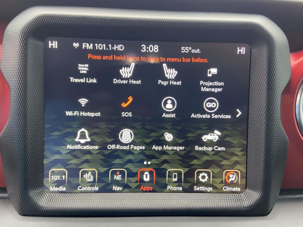 1-Year SiriusXM Guardian Trial, 4-Wheel Disc Brakes, 4.10 Rear Axle Ratio, 4G LTE Wi-Fi Hot Spot, 5-Year SiriusXM Traffic Service, 5-Year SiriusXM Travel Link Service, 8 Speakers, 8.4" Radio & Premium Audio Group, 8.4" Touchscreen Display, ABS brakes, Air Conditioning, Alloy wheels, Alpine Premium Audio System, AM/FM radio: SiriusXM, Apple CarPlay/Android Auto, Auto-Dimming Rear-View Mirror, Automatic temperature control, Aux Battery, Blind Spot & Cross Path Detection, Body Color Fender Flares, Brake assist, Cold Weather Group, Compass, Daytime Running Lamps LED Accents, Delay-off headlights, Driver door bin, Driver vanity mirror, Dual front impact airbags, Dual front side impact airbags, Electronic Stability Control, Emergency/Assistance Call, For Details, Visit DriveUconnect.com, Front anti-roll bar, Front Bucket Seats, Front Center Armrest w/Storage, Front dual zone A/C, Front fog lights, Front LED Fog Lamps, Front License Plate Bracket, Front reading lights, Fully automatic headlights, Garage door transmitter, GPS Navigation, HD Radio, Heated door mirrors, Heated Front Seats, Heated Steering Wheel, Illuminated entry, Integrated roll-over protection, Leather steering wheel, LED Lighting Group, LED Premium Reflector Headlamps, LED Taillamps, Low tire pressure warning, Manufacturer's Statement of Origin, Non-Lock Fuel Cap w/o Discriminator, Occupant sensing airbag, Off-Road Info Pages, Outside temperature display, Panic alarm, ParkSense Rear Park Assist System, ParkView Rear Back-Up Camera, Passenger door bin, Passenger vanity mirror, Performance Suspension, Power door mirrors, Power steering, Power Top Quarter Window Storage Bag, Power windows, Premium Cloth Low-Back Bucket Seats, Quick Order Package 22R, Radio data system, Radio: Uconnect 4 w/7" Display, Radio: Uconnect 4C Nav w/8.4" Display, Rear anti-roll bar, Rear reading lights, Rear Window Defroster, Rear Window Wiper/Washer, Remote keyless entry, Remote Start System, Removable Rear Quarter Windows, Safety Group, Security system, SiriusXM Traffic Plus, SiriusXM Travel Link, Sky 1-Touch Power Top, Speed control, Split folding rear seat, Steering wheel mounted audio controls, Stop-Start Dual Battery System, Tachometer, Telescoping steering wheel, Tilt steering wheel, Traction control, Trip computer, Variably intermittent wipers, Voltmeter, Wheels: 17" x 7.5" Machined w/Black Pockets. Black Clearcoat 2021 Jeep Wrangler Unlimited Rubicon 8-Speed Automatic 2.0L I4 DOHC 4WD