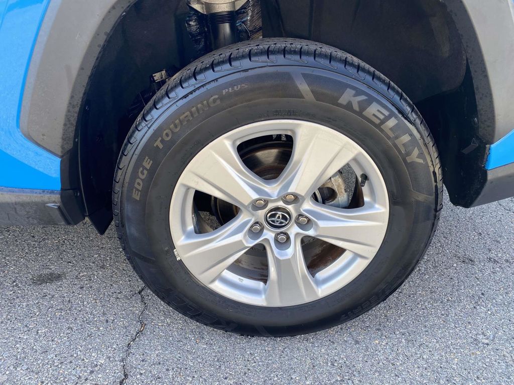 Cloth, 4-Wheel Disc Brakes, 6 Speakers, ABS brakes, Air Conditioning, Alloy wheels, AM/FM radio: SiriusXM, AM/FM Stereo, Apple CarPlay/Android Auto, Auto High-beam Headlights, Automatic temperature control, Axle Ratio: 3.177, Brake assist, Bumpers: body-color, Delay-off headlights, Driver door bin, Driver vanity mirror, Dual front impact airbags, Dual front side impact airbags, Electronic Stability Control, Emergency communication system, Exterior Parking Camera Rear, Fabric Seat Trim, Four wheel independent suspension, Front anti-roll bar, Front Bucket Seats, Front Center Armrest, Front dual zone A/C, Front fog lights, Front reading lights, Fully automatic headlights, Heated door mirrors, Illuminated entry, Knee airbag, Low tire pressure warning, Occupant sensing airbag, Outside temperature display, Overhead airbag, Overhead console, Panic alarm, Passenger door bin, Passenger vanity mirror, Power door mirrors, Power driver seat, Power steering, Power windows, Radio data system, Rear anti-roll bar, Rear seat center armrest, Rear window defroster, Rear window wiper, Remote keyless entry, Roof rack: rails only, Speed control, Speed-sensing steering, Split folding rear seat, Spoiler, Steering wheel mounted audio controls, Tachometer, Telescoping steering wheel, Tilt steering wheel, Traction control, Trip computer, Turn signal indicator mirrors, Variably intermittent wipers, Wheels: 17" 5-Spoke Silver Alloy, Cloth. Blue 2021 Toyota RAV4 XLE 8-Speed Automatic 2.5L 4-Cylinder DOHC Dual VVT-i FWD