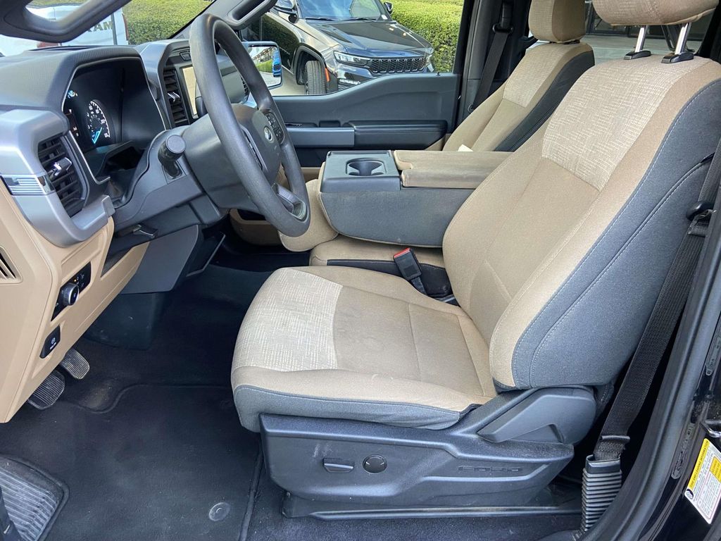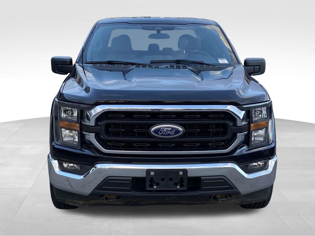 4WD, 18" Silver Painted Aluminum Wheels, 3.31 Axle Ratio, 4-Wheel Disc Brakes, 6 Speakers, 8-Way Power Driver's Seat w/Power Lumbar, ABS brakes, Air Conditioning, Alloy wheels, AM/FM radio, Auto High-beam Headlights, Brake assist, Bumpers: chrome, Cloth 40/20/40 Front Seat, Compass, Delay-off headlights, Driver door bin, Driver vanity mirror, Dual front impact airbags, Dual front side impact airbags, Electronic Stability Control, Emergency communication system: SYNC 4 911 Assist, Exterior Parking Camera Rear, Front anti-roll bar, Front Center Armrest w/Storage, Front fog lights, Front License Plate Bracket, Front reading lights, Front wheel independent suspension, Fully automatic headlights, Heated door mirrors, Illuminated entry, Low tire pressure warning, Occupant sensing airbag, Outside temperature display, Overhead airbag, Overhead console, Panic alarm, Passenger door bin, Passenger vanity mirror, Power door mirrors, Power steering, Power windows, Radio data system, Radio: AM/FM Stereo w/6 Speakers, Rear reading lights, Rear step bumper, Rear window defroster, Remote keyless entry, Security system, Speed control, Speed-sensing steering, Split folding rear seat, Steering wheel mounted audio controls, SYNC 4, Tachometer, Telescoping steering wheel, Tilt steering wheel, Traction control, Trip computer, Variably intermittent wipers, Voltmeter, Wheels: 17" Silver Painted Aluminum, 4WD. Black Metallic 2023 Ford F-150 XLT 10-Speed Automatic 3.5L V6 EcoBoost 4WD