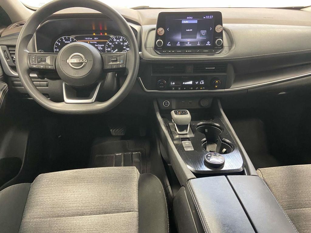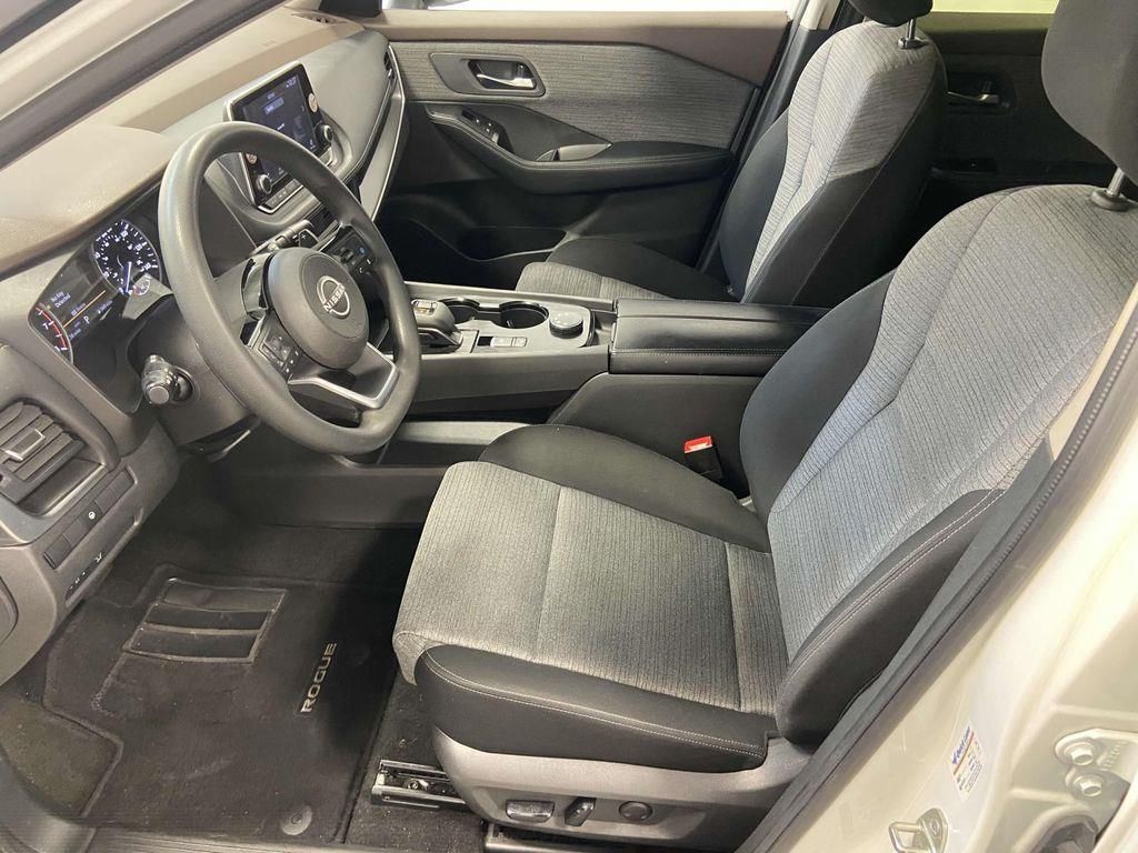 AWD, 18" Aluminum Alloy Wheels, 4-Wheel Disc Brakes, 5.604 Axle Ratio, 6 Speakers, ABS brakes, Air Conditioning, Alloy wheels, AM/FM Radio, AM/FM radio: SiriusXM, Auto High-beam Headlights, Automatic temperature control, Brake assist, Bumpers: body-color, Cloth Seat Trim, Delay-off headlights, Driver door bin, Driver vanity mirror, Dual front impact airbags, Dual front side impact airbags, Electronic Stability Control, Emergency communication system: NissanConnect Services, Four wheel independent suspension, Front anti-roll bar, Front Bucket Seats, Front Center Armrest, Front dual zone A/C, Front reading lights, Fully automatic headlights, Heated door mirrors, Illuminated entry, Knee airbag, Low tire pressure warning, NissanConnect featuring Apple CarPlay and Android Auto, Occupant sensing airbag, Outside temperature display, Overhead airbag, Overhead console, Panic alarm, Passenger door bin, Passenger vanity mirror, Power door mirrors, Power driver seat, Power steering, Power windows, Radio data system, Rear anti-roll bar, Rear Parking Sensors, Rear seat center armrest, Rear side impact airbag, Rear window defroster, Rear window wiper, Remote keyless entry, Speed control, Speed-Sensitive Wipers, Split folding rear seat, Spoiler, Steering wheel mounted audio controls, Tachometer, Telescoping steering wheel, Tilt steering wheel, Traction control, Trip computer, Variably intermittent wipers, AWD. Pearl White Tricoat 2023 Nissan Rogue SV CVT with Xtronic 1.5L I3 Turbocharged DOHC 12V LEV3-ULEV50 201hp AWD
