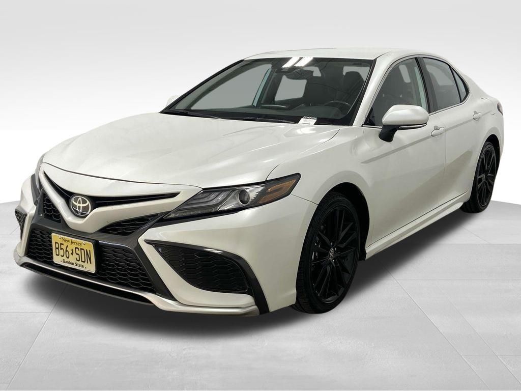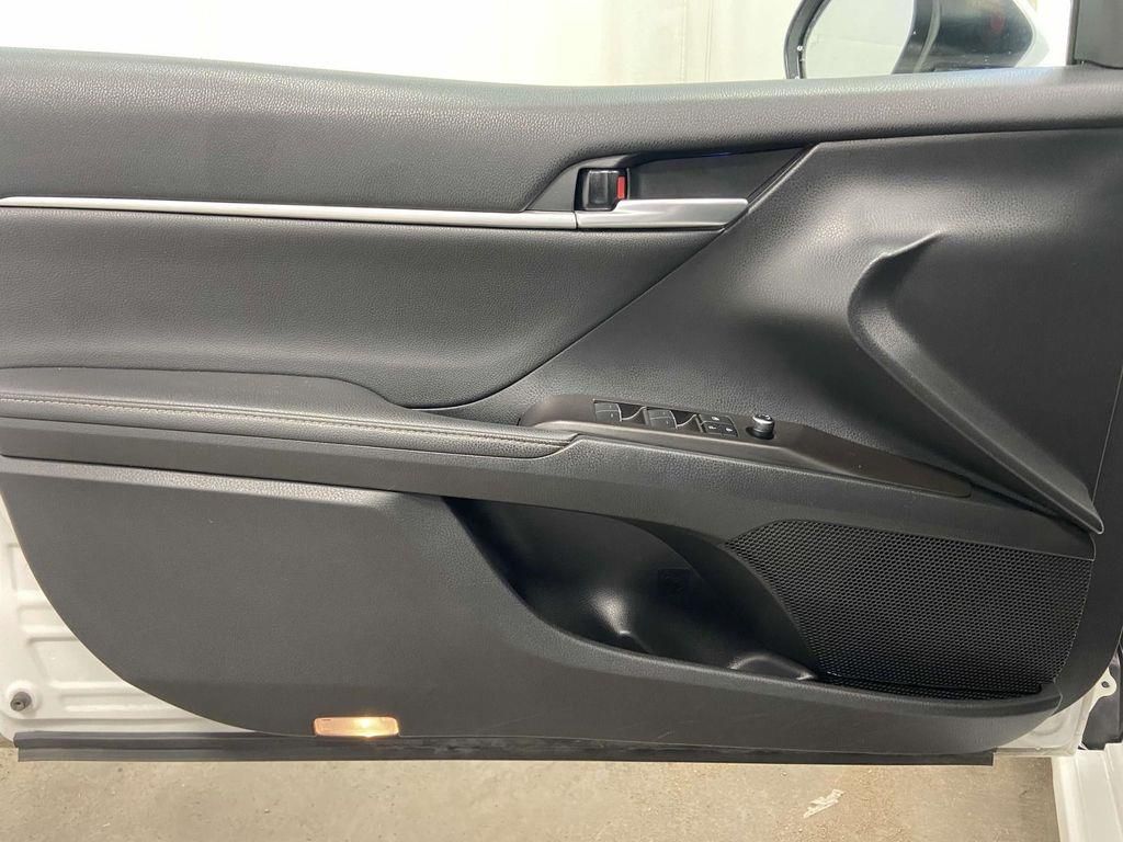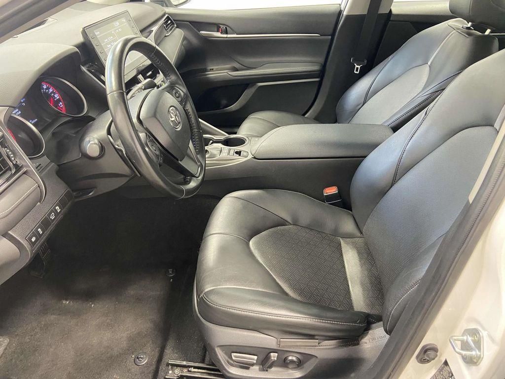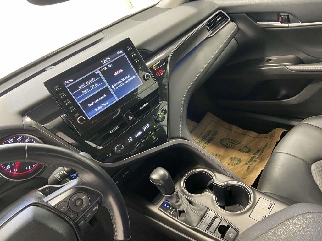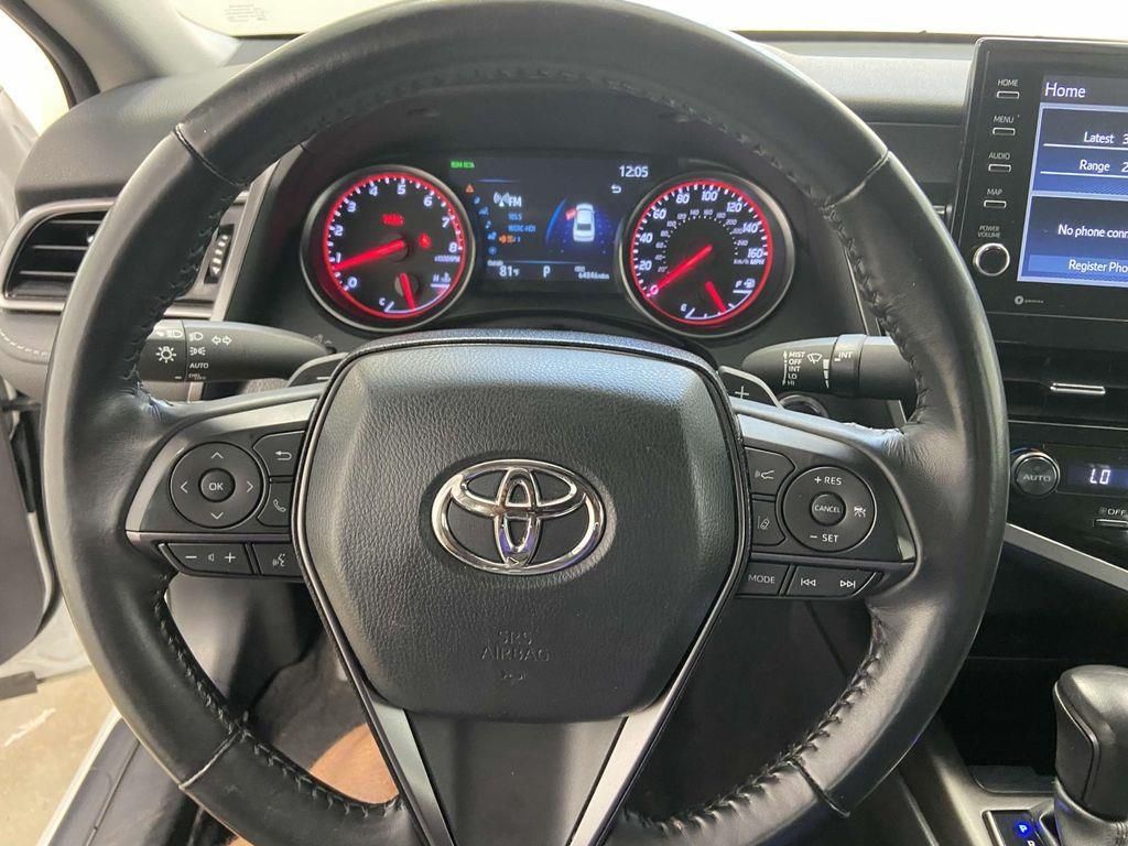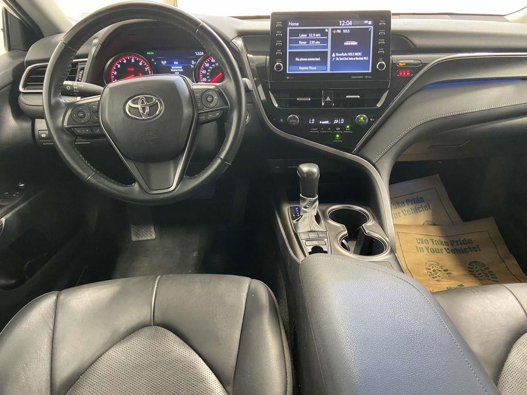 Black Leather, 4-Wheel Disc Brakes, 6 Speakers, ABS brakes, Air Conditioning, Alloy wheels, AM/FM radio: SiriusXM, Apple CarPlay/Android Auto, Auto High-beam Headlights, Auto-dimming Rear-View mirror, Automatic temperature control, Brake assist, Bumpers: body-color, Delay-off headlights, Driver door bin, Driver vanity mirror, Dual front impact airbags, Dual front side impact airbags, Electronic Stability Control, Emergency communication system: Safety Connect (1-year trial), Exterior Parking Camera Rear, Four wheel independent suspension, Front anti-roll bar, Front Bucket Seats, Front Center Armrest, Front dual zone A/C, Front reading lights, Fully automatic headlights, Garage door transmitter: HomeLink, Heated door mirrors, Heated front seats, Illuminated entry, Knee airbag, Leather steering wheel, Low tire pressure warning, Multi-Stage Heated Front Bucket Seats, Occupant sensing airbag, Outside temperature display, Overhead airbag, Overhead console, Panic alarm, Passenger door bin, Passenger vanity mirror, Perforated Leather Seat Trim, Power door mirrors, Power driver seat, Power passenger seat, Power steering, Power windows, Radio data system, Radio: Audio Plus, Rear anti-roll bar, Rear reading lights, Rear seat center armrest, Rear side impact airbag, Rear window defroster, Remote keyless entry, Security system, Speed control, Speed-sensing steering, Split folding rear seat, Spoiler, Steering wheel mounted audio controls, Tachometer, Telescoping steering wheel, Tilt steering wheel, Traction control, Trip computer, Turn signal indicator mirrors, Variably intermittent wipers, Wheels: 8.0J x 19" Alloy, Black Leather. Ice Cap 2023 Toyota Camry XSE 8-Speed Automatic 2.5L I4 DOHC 16V FWD