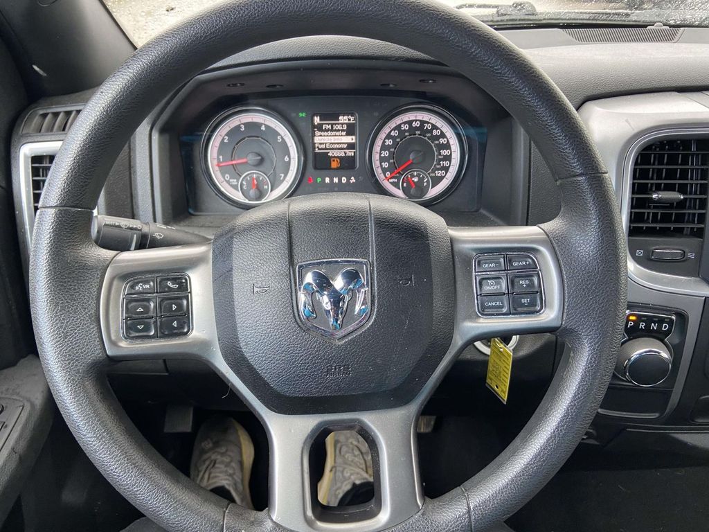 17" x 7" Aluminum Wheels, 3.21 Rear Axle Ratio, 4-Wheel Disc Brakes, 40/20/40 Split Bench Seat, 6 Speakers, ABS brakes, Active Grille Shutters, Air Conditioning, Alloy wheels, AM/FM radio: SiriusXM, Audio Input Jack for Mobile Devices, B-Pillar Black Out, Bi-Function Halogen Projector Headlamps, Black Exterior Mirrors, Black Exterior Truck Badging, Black Grille w/RAM Lettering, Black Headlamp Filler Panel, Black Powder Coated Front Bumper, Black Powder Coated Rear Bumper, Black RAM Head Tailgate Badge, Black Wheel Flares, Brake assist, Bumpers: chrome, Center Hub, Cloth 40/20/40 Bench Seat, Compass, Delay-off headlights, Driver door bin, Dual front impact airbags, Dual front side impact airbags, Electronic Shift, Electronic Stability Control, Exterior Mirrors w/Heating Element, Front anti-roll bar, Front Armrest w/3 Cupholders, Front Center Armrest w/Storage, Front License Plate Bracket, Front reading lights, Front wheel independent suspension, Front Wheel Well Liners, Fully automatic headlights, GPS Antenna Input, Heated door mirrors, Illuminated entry, Integrated Voice Command w/Bluetooth, Low tire pressure warning, Manufacturer's Statement of Origin, Occupant sensing airbag, Outside temperature display, Overhead airbag, Overhead console, Panic alarm, ParkSense Rear Park Assist System, ParkView Rear Back-Up Camera, Passenger door bin, Passenger vanity mirror, Power door mirrors, Power steering, Power windows, Quick Order Package 29F Warlock, Radio data system, Radio: Uconnect 3 w/5" Display, Rear anti-roll bar, Rear seat center armrest, Rear step bumper, Remote keyless entry, Remote USB Port, Remote USB Port - Charge Only, Semi-Gloss Black Hub, Speed control, Sport Tail Lamps, Storage Tray, Tachometer, Tilt steering wheel, Tip Start, Traction control, Trip computer, Variably intermittent wipers, Voltmeter, Warlock, Warlock Interior Accents, Wheels: 20" x 9" High Gloss Black Aluminum. Diamond Black Crystal Pearlcoat 2024 Ram 1500 Classic Warlock 8-Speed Automatic 3.6L V6 24V VVT RWD